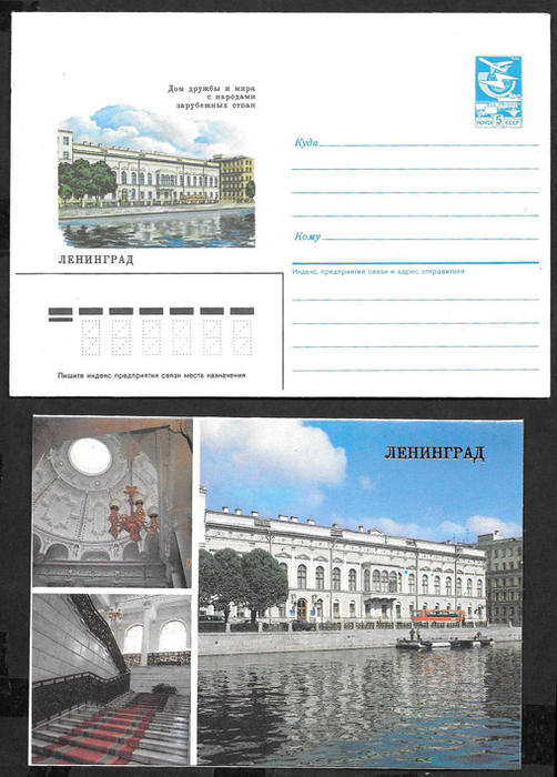 Конверт с карточкой. Ленинград. Дом дружбы и мира с народами зарубежных стран. 1986 год