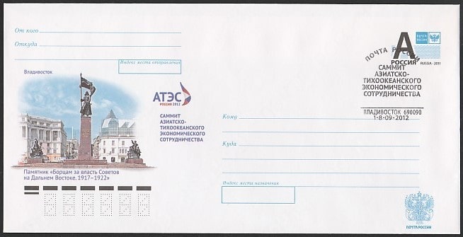 Конверт с литерой "А" и спецгашением. Саммит АТЭС, 01-08.09.2012 год, Владивосток