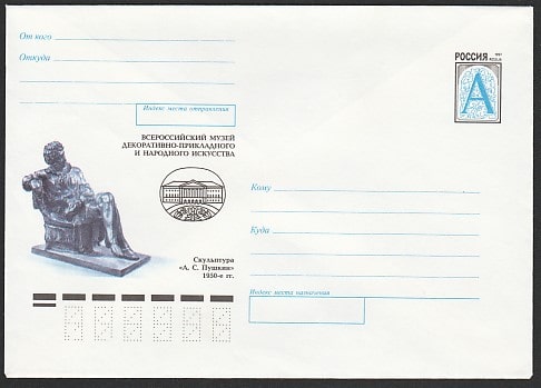 Конверт с литерой "А". Скульптура "А.С. Пушкин", 19.11.1998 год