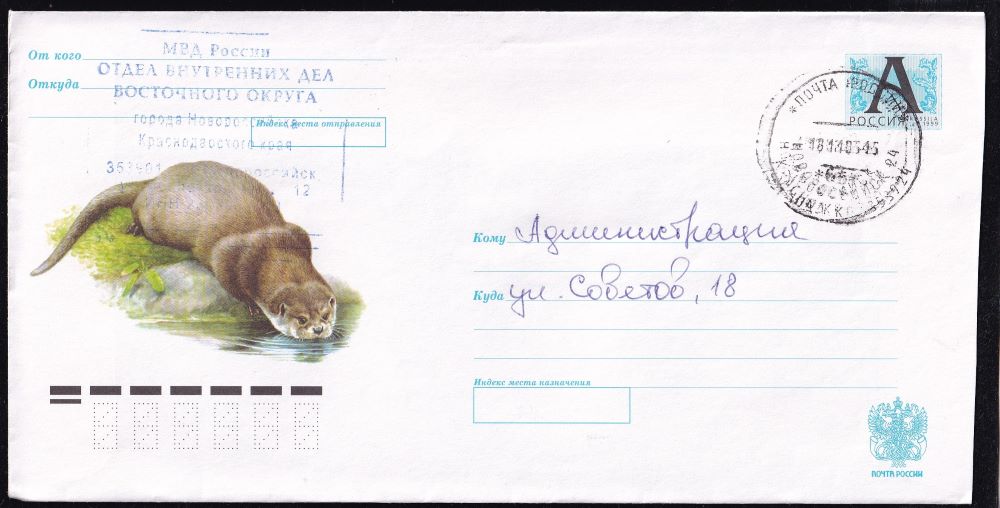 Конверт с литерой "А" - Выдра, 6.07.2005 год, прошёл почту
