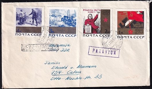 Конверт с марками 20 лет Победы, 1965 год, международный ГДР - Москва, прошел почту