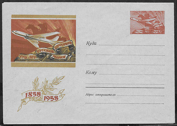 Конверт с ОМ - 100 лет русской почтовой марке. 1958 год ВЗ Волны