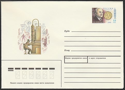 Конверт с ОМ. 100 лет со дня рождения физика А.А. Лебедева, 1993 год