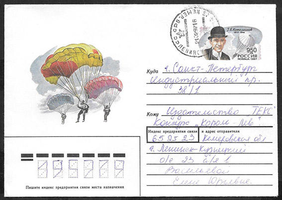 Конверт с ОМ - 125 лет со дня рождения Г.Е. Котельникова. Прошел почту. 1997 год