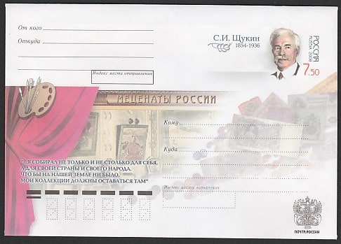 Конверт с ОМ. Благотворители и меценаты России. С.И. Щукин, 2008 год