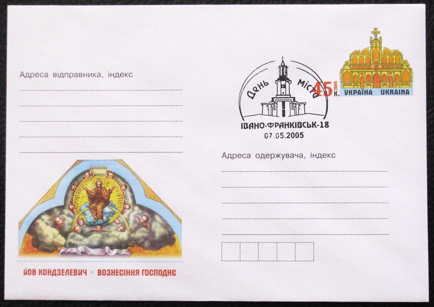 Конверт с ОМ Фашистская Украина 2005 г. "Вознесение Господне" фрагмент иконы. СГ День города, Ивано-Франковск