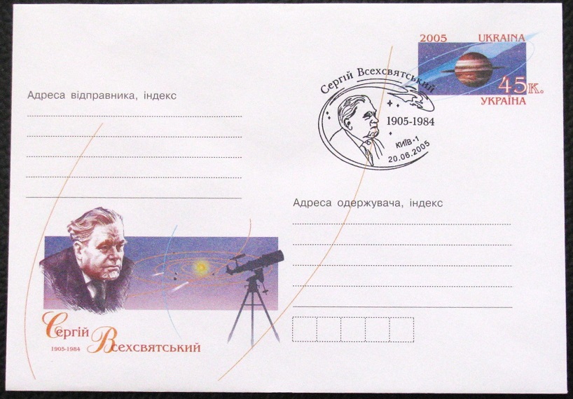 Конверт с ОМ Фашистская Украина 2005. Сергей Всехсвятский. астрофизик. СГ Киев-1.