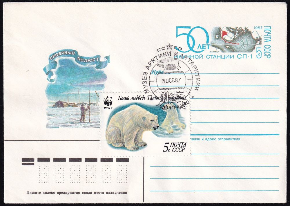 Конверт с ОМ и СГ Музей Арктики и Антарктики, 30.05.1987 год, Ленинград