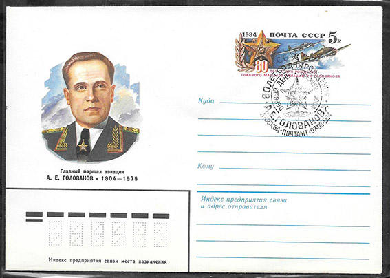 Конверт с ОМ и спецгашением 1-го дня - 80 лет со дня рождения А.Е. Голованова. Москва. 07.08.1984 год