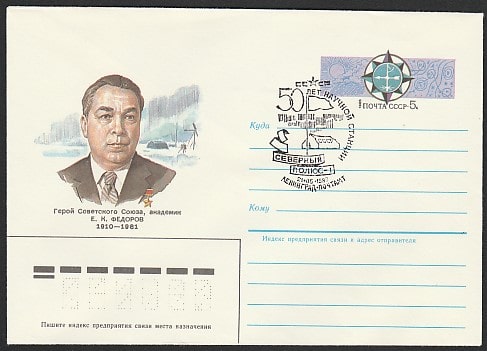 Конверт с ОМ и спецгашением. 50 лет научной станции "Северный полюс-1", 21.05.1987 год, Ленинград, почтамт