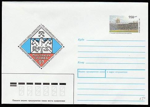Конверт с ОМ. Международный симпозиум "Почтовая тройка-97" в Санкт-Петербурге, 1997 год