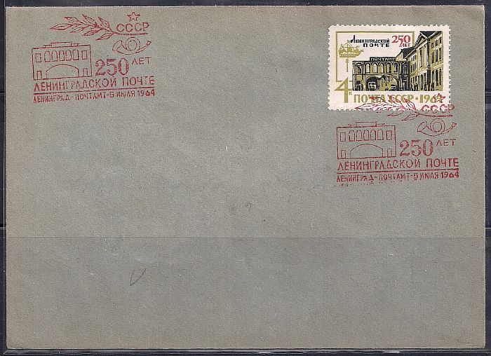 Конверт с СГ. 250 лет Ленинградской почте, 05.07.1964 год, Ленинград почтамт