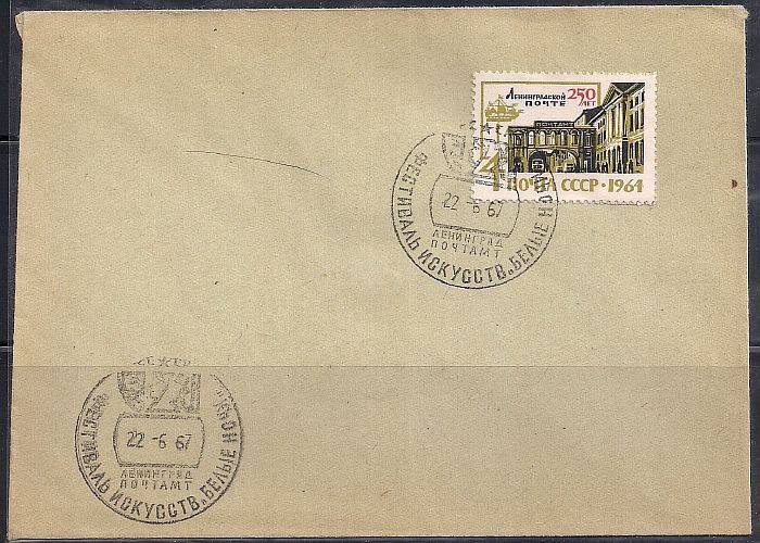 Конверт с СГ. Фестиваль искусств "Белые ночи", 28.06.1967 год, Ленинград почтамт, наклеена марка 1964 г.