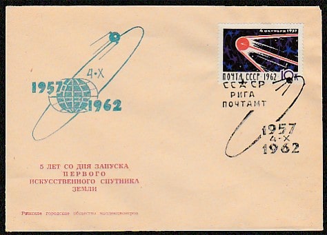 Конверт со СГ. 5 лет со дня запуска I искусственного спутника Земли, 04.10.1962 год, Рига, почтамт.