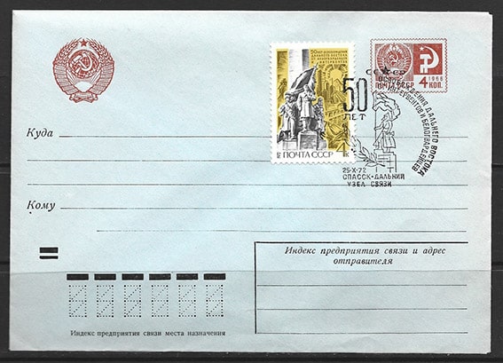 Конверт со СГ 50 лет освобождения Дальнего Востока от интервентов и белогвардейцев, 25.10.1972 год
