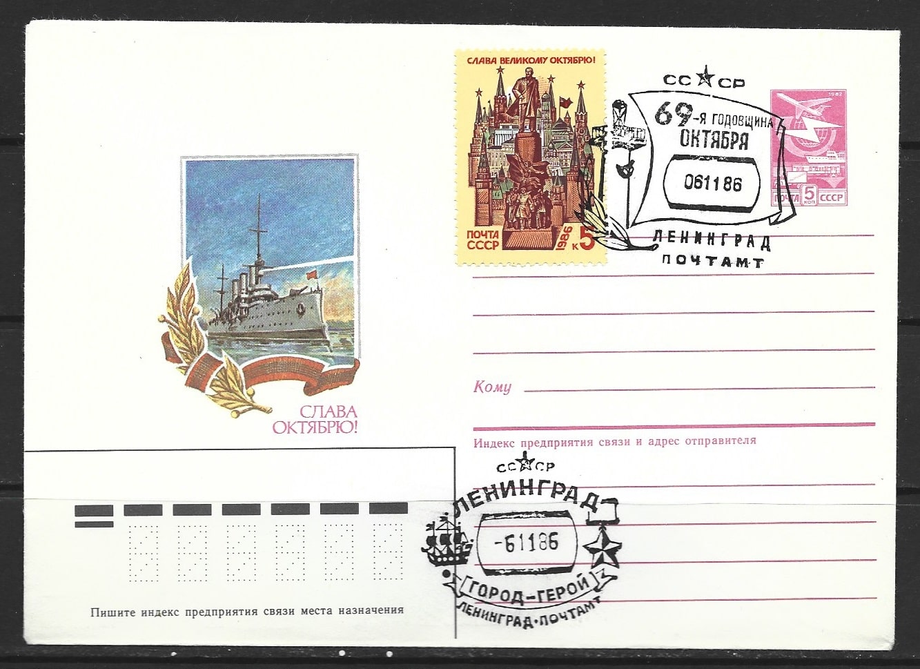 Конверт со СГ 69-я годовщина Октября, Ленинград 6.11.1986 год