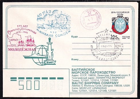 Конверт со СГ "Антарктида. Беллинсгаузен. Станция Молодежная", 6.05.1995 год