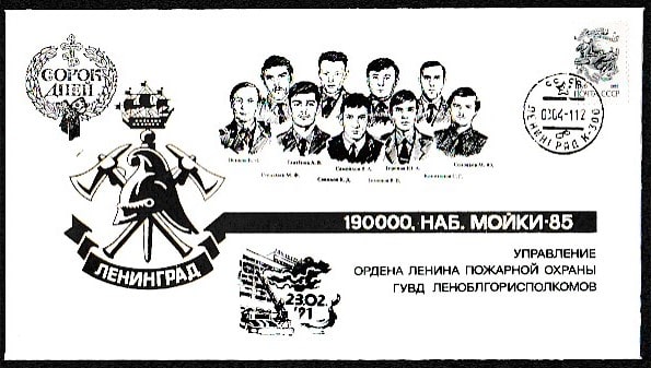 Конверт со СГ. Пожарные, погибшие при тушении пожара в гостинице "Ленинград", 23.02.1991 год.