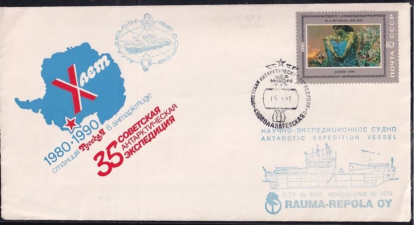 Конверт со СГ "Советская антарктическая экспедиция "Новолазаревская", 15.05.1991 год (ВВ)