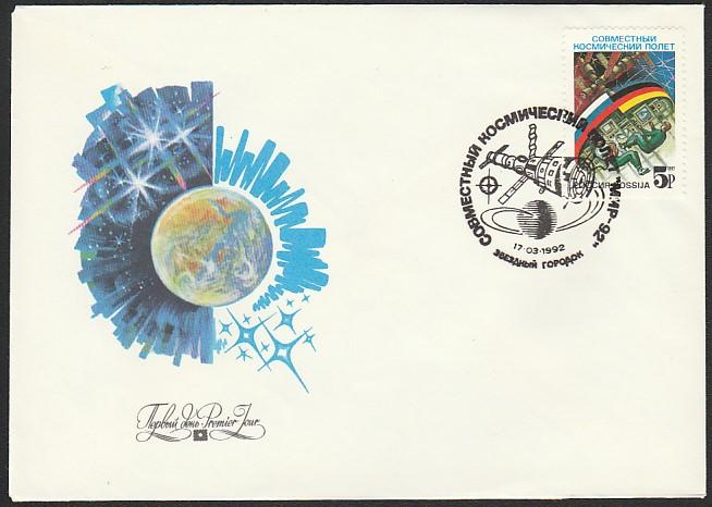 Конверт со СГ. Совместный космический полёт "Мир-92", 17.03.1992 год, Звёздный Городок ( 3Ю