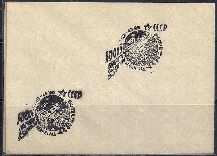 Конверт со спецгашением. 10000 оборотов 3-го спутника СССР, 04.04.1960 год, Ленинград центральный телеграф