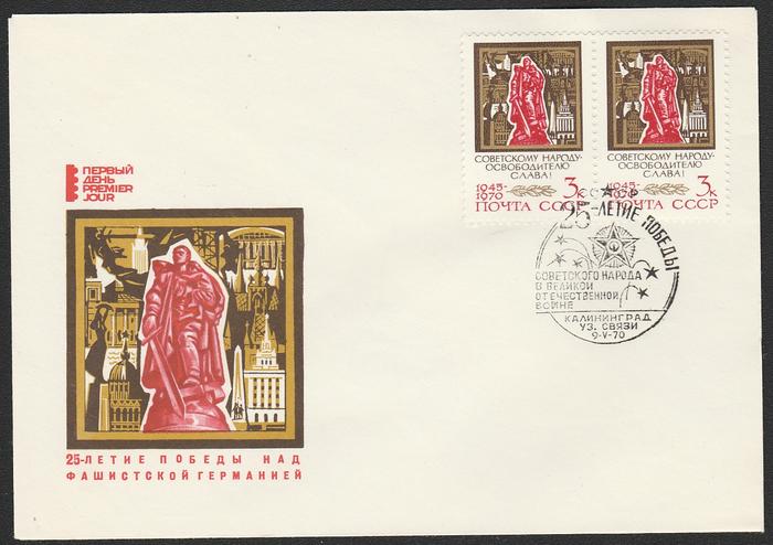 Конверт со спецгашением. 25 лет Победы. 09.05.70 г. Калининград.