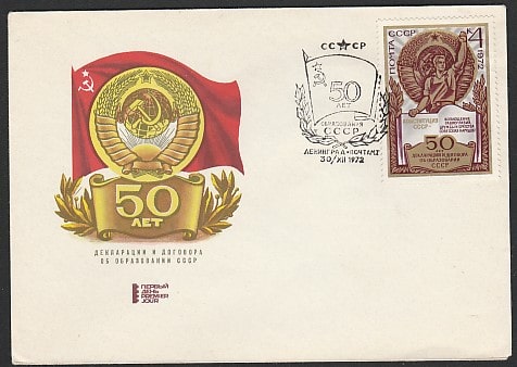 Конверт со спецгашением. 50 лет образования СССР, 30.12.1972 год, Ленинград, почтамт (III)