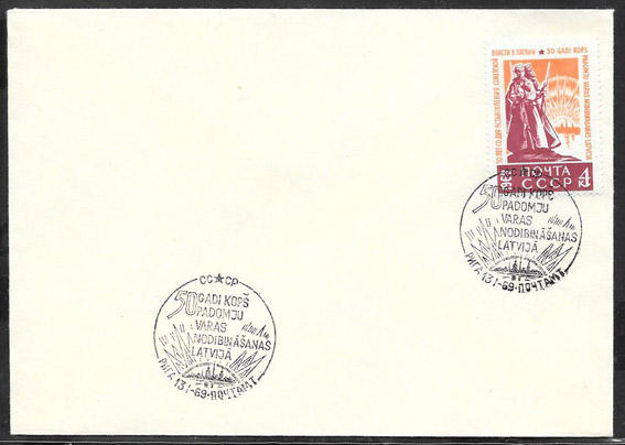 Конверт со спецгашением - 50 лет со дня установления Советской власти в Латвии. Рига. 1969 год