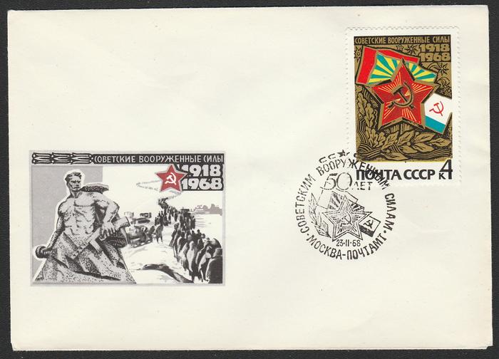 Конверт со спецгашением. 50 лет Советским Вооружённым Силам. 23.02.68 г. Москва.