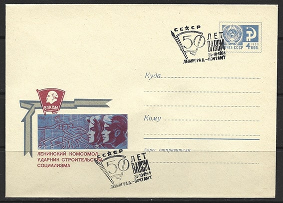 Конверт со спецгашением 50 лет ВЛКСМ, 29.10.1968 год