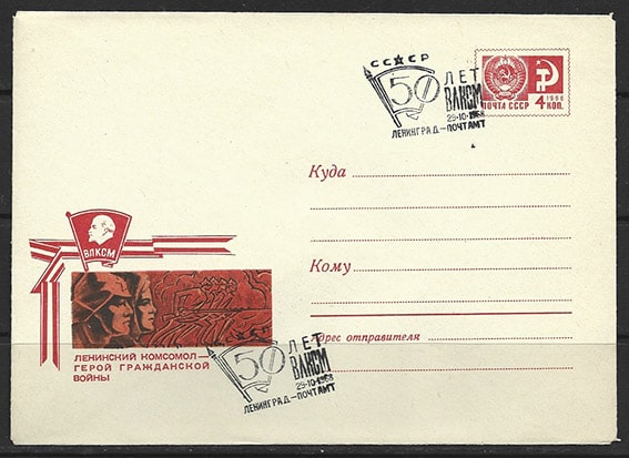 Конверт со спецгашением 50 лет ВЛКСМ, 29.10.1968 год