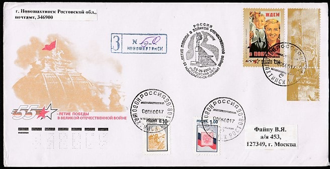 Конверт со спецгашением. 55 лет Победы в Великой Отечественной войне, 09.05.2000 год, Новошахтинск, заказное, прошёл почту