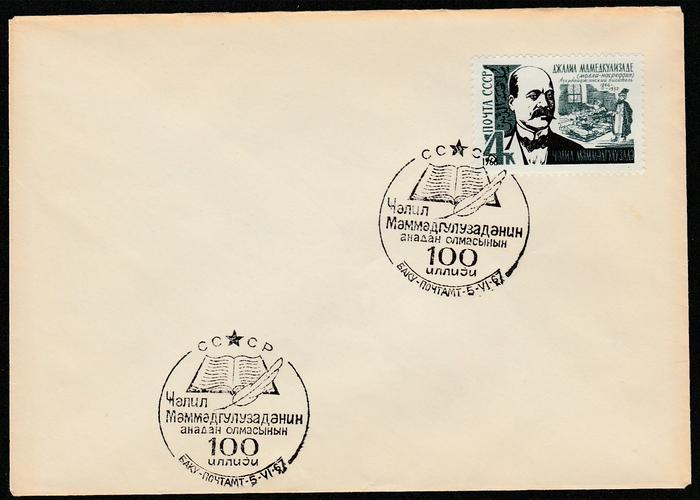 Конверт со спецгашением. Азербайджанский писатель А.Мамедкулизаде. 05.06.67 г.