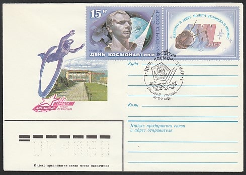 Конверт со спецгашением. День космонавтики, 12.04.1986 год, Звёздный Городок