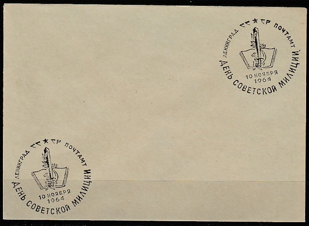 Конверт со спецгашением. День советской милиции, 10.11.1964 год, Ленинград, почтамт.
