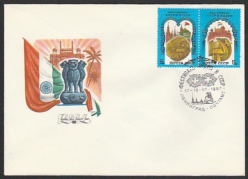 Конверт со спецгашением. Фестиваль Индии в СССР, 17-19.07.1987 год, Ленинград, почтамт.