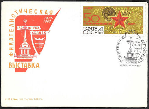 Конверт со спецгашением - Филвыставка 50 лет Октября, 1967 г. Л-д