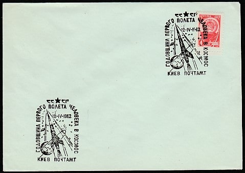 Конверт со спецгашением. Годовщина первого полёта человека в космос, 12.04 1962 год, Киев, почтамт