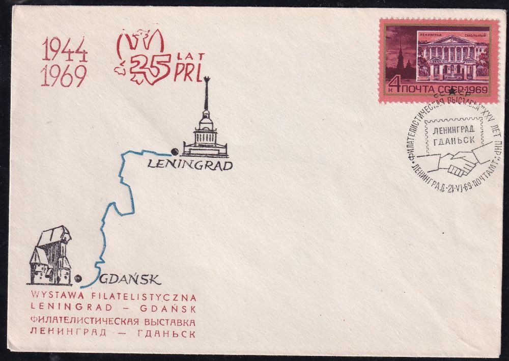 Конверт со спецгашением. Ленинград-Гданьск. Филвыставка "25 лет ПНР". 21.06.1969 год Ленинград