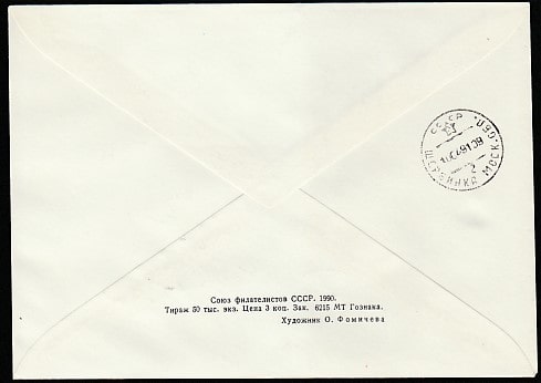 Конверт со спецгашением. Международная филвыставка "К звёздам-91". День Ю.А. Гагарина, 07.04.1991 год, Москва, Г-34 (+1Ю)