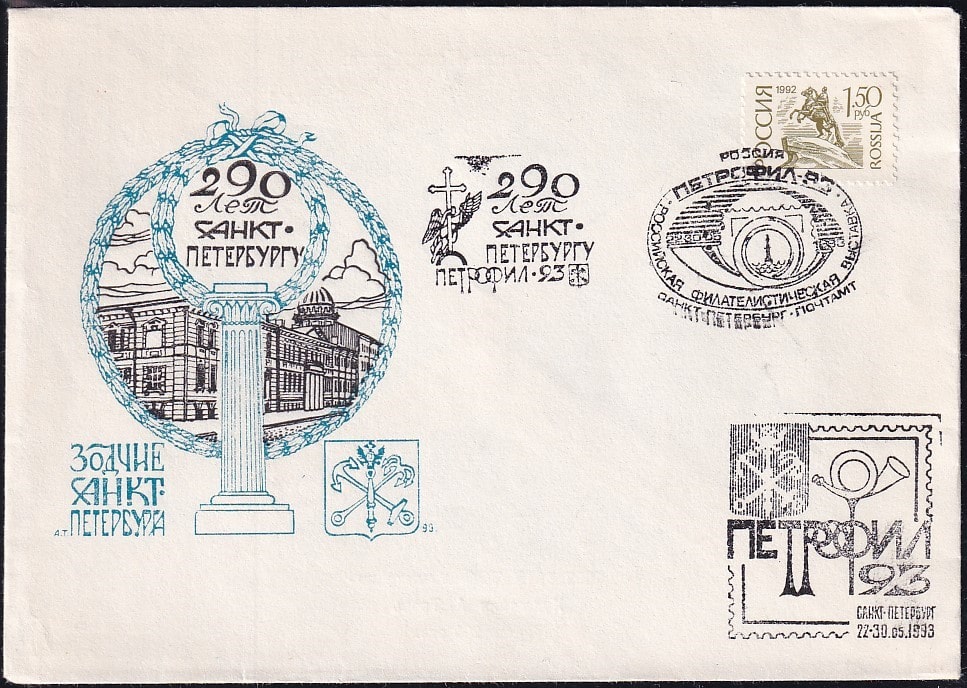 Конверт со спецгашением - "Петрофил-83", 290 лет Санкт-Петербургу, 22-30.05.1993, Санкт-Петербург