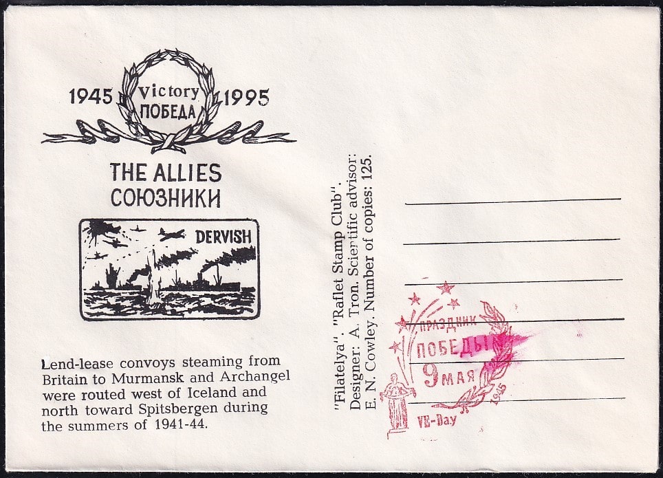 Конверт со спецгашением - Праздник Победы 9 мая (Союзники), 1995 год