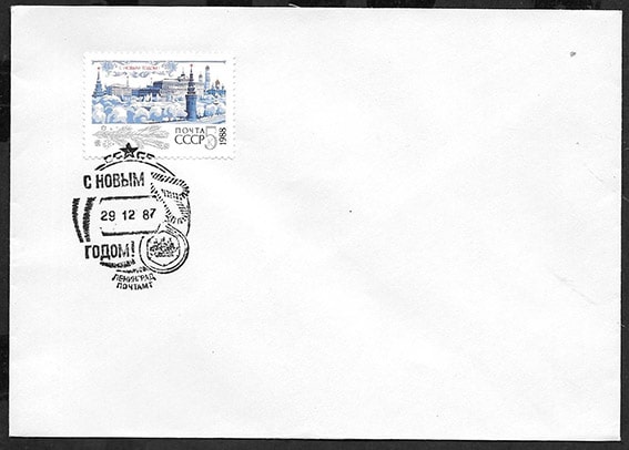 Конверт со спецгашением - С Новым Годом! Ленинград 29.12.1987 год