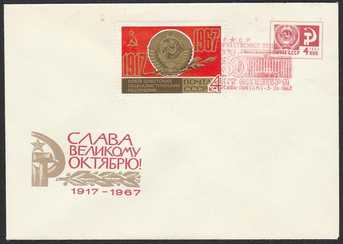 Конверт со СГ. Торжественное заседание 50 лет Октября. 03.11.1967 г. красный