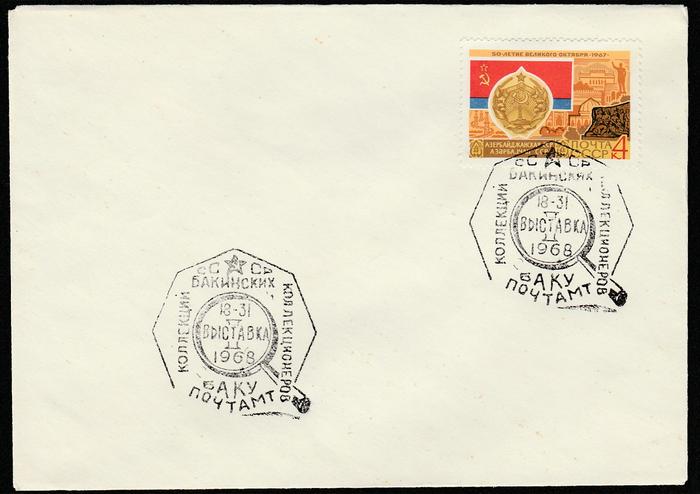 Конверт со спецгашением. Выставка коллекций бакинских коллекционеров. 1968 г. Баку.