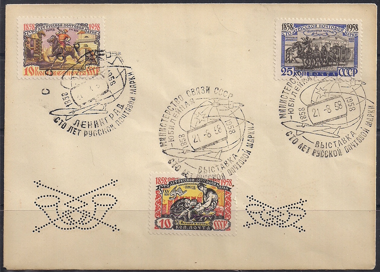 Конверт со СГ. Юбилейная выставка "100 лет русской почтовой марке", 21.08.58 год. Космос