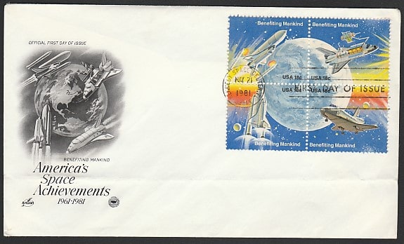 Конверт США. Американские достижения в космосе, гашение 21.05.1981 год, косм. центр Кеннеди (+1Ю)