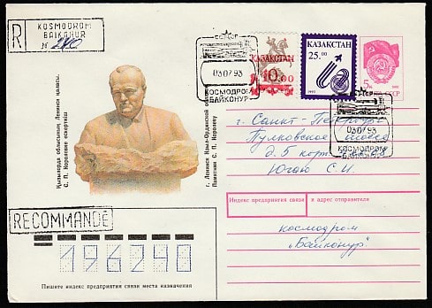 Конверт. Стыковка пилотируемого КК "Союз ТМ-17" с ОС "Мир", гашение 03.07.1993 год, к/Байконур, прошёл почту (+1Ю)