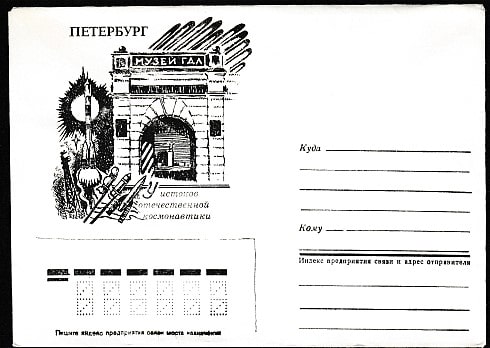Конверт. У истоков отечественной космонавтики. Музей ГДЛ (газодинамическая лаборатория), худ. К. Губер, 1992 год (+5Ю)