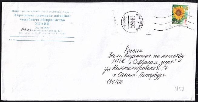 Конверт Украины, 2001 год, прошел почту